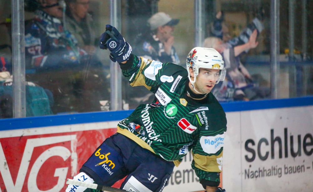 Roosters-Stürmer Shane Gersich traf gleich zweimal gegen die Eisbären. Zum Sieg rechte das aber nicht. Archivfoto: Hendrik Klein