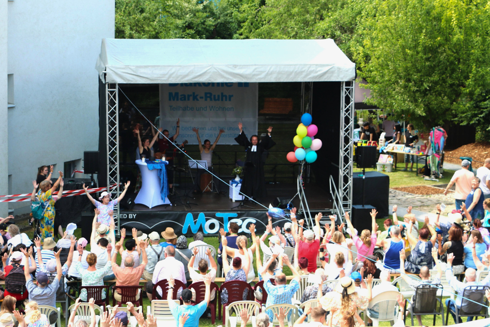 (EB). Unter dem Motto „Alle Jubel Jahre“ feierte die Diakonie Mark- Ruhr Teilhabe und Wohnen (DMR-T&W) ein fröhliches und buntes Sommerfest an ihrem Stammsitz in der Bodelschwinghstraße 1 in Iserlohn. Bei bestem Sommerwetter kamen rund 600 bis 700 Gäste – Klienten, Bewohner, Angehörige, Mitarbeitende und Nachbarn – zusammen, um gemeinsam einen Tag voller Musik, Begegnung und guter Laune zu erleben.
