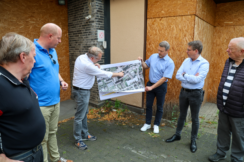 Michael Schmidt und Matthias Faßmann (Mitte) präsentieren den CDU-Fraktionsmitgliedern die Pläne für das neue „MarienQuartier“. Foto: Hendrik Klein