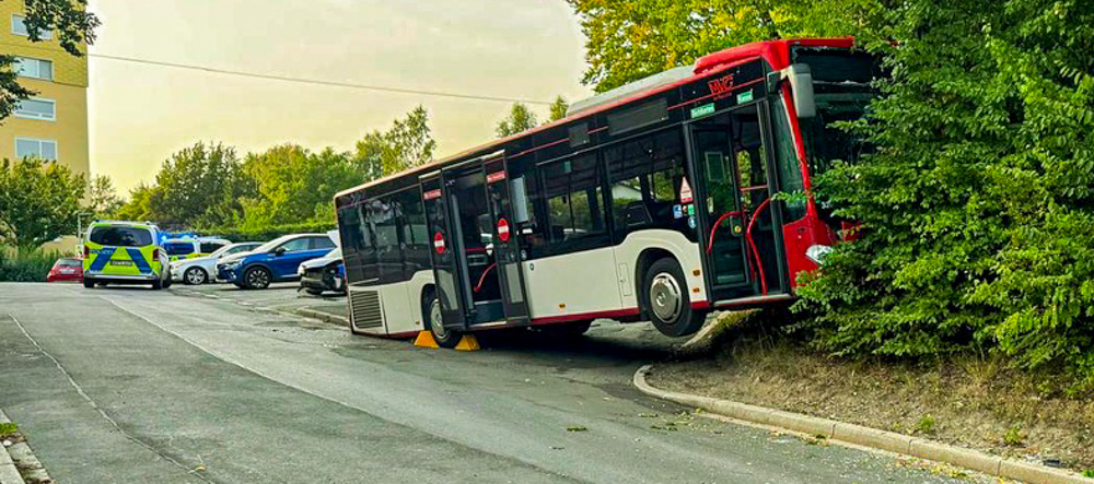 Ein Linienbus war aus bislang ungeklärter Ursache mit mehreren geparkten Pkw zusammengestoßen und auf einer Böschung am Straßenrand zum Stehen gekommen. Zum Zeitpunkt des Unfalls befand sich der Bus noch nicht im Linienbetrieb, sodass sich lediglich der Fahrer im Fahrzeug aufhielt. Weil er nicht eingeklemmt war, konnte er den Bus aus eigener Kraft verlassen. Nach einer Untersuchung durch den Rettungsdienst wurde der Fahrer zur Kontrolle in ein Iserlohner Krankenhaus gebracht.