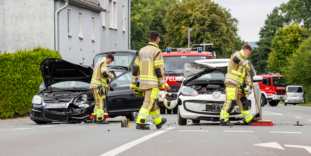 Bei einem Frontalzusammenstoß auzf der Drüpplingser Straße in Iserohn wurden vier Personen verletzt: Foto: Feuerwehr Iserlohn, Marvin Asbeck