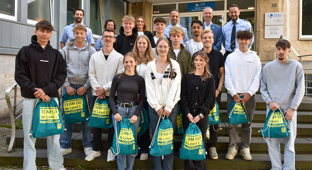 Die Kreispolizeibehörde begrüßte die neuen Schülerinnen und Schüler der Fachoberschule Polizei. 14 junge Frauen und Männer aus dem Märkischen Kreis haben in dieser Woche ihren neuen Ausbildungsabschnitt begonnen. Foto: Polizei MK