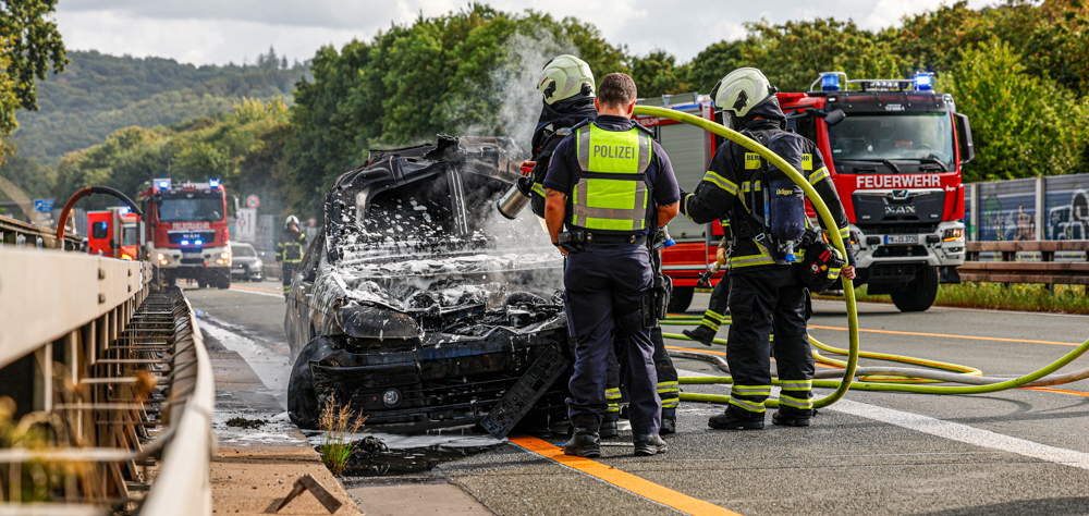 Auf der Autobahn brannte dieser PKW völlig aus. Foto: Feuerwehr Iserlohn/Marvin Asbeck