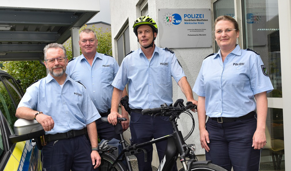 (ots). Sie zeigen Gesicht für die Polizei, sie sind ansprechbar und kümmern sich: Die Leiterin der Polizeiwache Werdohl, Polizeihauptkommissarin Kathrin Reinwald, hat jetzt die Bezirksbeamten für Werdohl und Neuenrade vorgestellt. Polizeihauptkommissar (PHK) Dieter Stawinoga kümmert sich um die Werdohler Innenstadt sowie die Ortsteile Ütterlingsen, Dresel und Kettling. Seit diesem Monat betreut PHK Axel Wahle den Bereich Neuenrade. Er hat ein Büro im Neuenrader Rathaus. PHK Christoph Schicketanz ist der Dienstälteste im Bezirksdienst-Team der Wache Werdohl und für die Werdohler Ortsteile Pungelscheid, Kleinhammer, Eveking, Bärenstein und Königsburg zuständig.