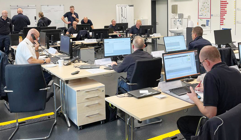 Die Führungskräfte kannten zwar den Termin der Übung, nicht jedoch die simulierte Einsatzlage. Diese umfasste eine ganze Reihe von Bedrohungen: Sabotage an der kritischen Infrastruktur, Cyberangriffe auf Unternehmen, biologische Kampfstoffe im Trinkwasser sowie die Folgen von Stromausfällen. Aufgabe für die Einsatzleitung und den Krisenstab war es, die Vielzahl an Lagemeldungen zusammenzuführen, zu bewerten und Entscheidungen für die Gefahrenabwehr zu treffen.