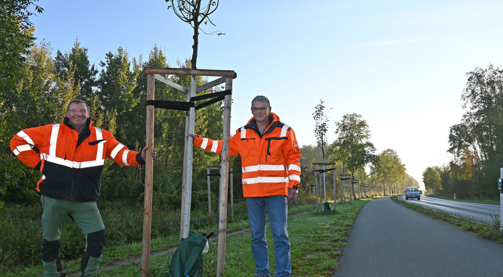 Freuen sich über die 200 jungen Winterlinden, die an der K 42 mithilfe von Fördergeldern des Landes gepflanzt worden sind: Baumkontrolleur Holger Meermann (l.) und Baubetriebshof-Leiter Bernd Dohle. Foto: Susanne Schulte-Nölle/ Kreis Soest