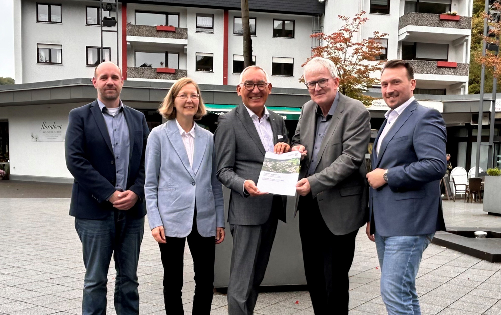 Alexander Gundlach (stellv. Fachbereichsleiter der Bauverwaltung, von links nach rechts), Julia Jungesblut (Bezirksregierung Arnsberg), Regierungspräsident Heinrich Böckelühr, Bürgermeister Jörg Schönenberg und Christian Breddermann (gewählter Bürgermeister). Foto: Gemeinde Schalksmühle