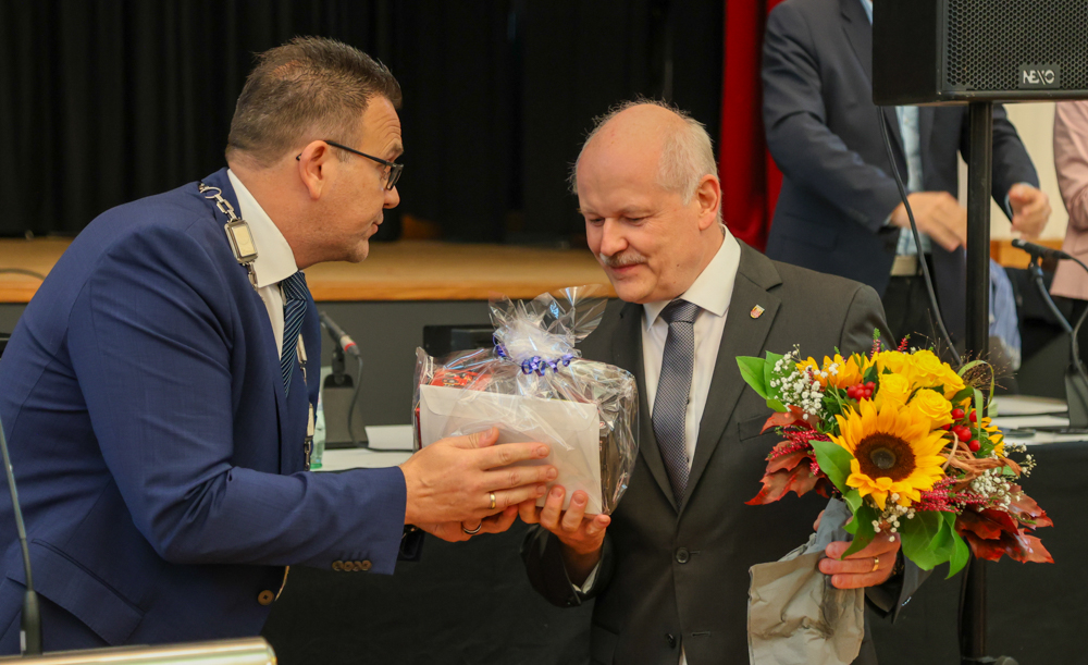Mit Beharrlichkeit, Verlässlichkeit und Sachverstand habe sich Christian Eichhorn auch in Krisenzeiten durch seine ruhige und besonnene Art Verdienste erworben. Michael Joithe erinnerte an den Sturm Kyrill und den Großbrand bei WEKA, beides habe die Einsatzkräfte vor große Herausforderungen gestellt. Ebenso viel bewegt habe Eichhorn auch als Ressortleiter Bürger, Sicherheit und IT. „Du hast in deiner Laufbahn viel bewegt“, schloss Joithe mit dem Wunsch für einen verdienten Ruhestand im Kreise der Familie.