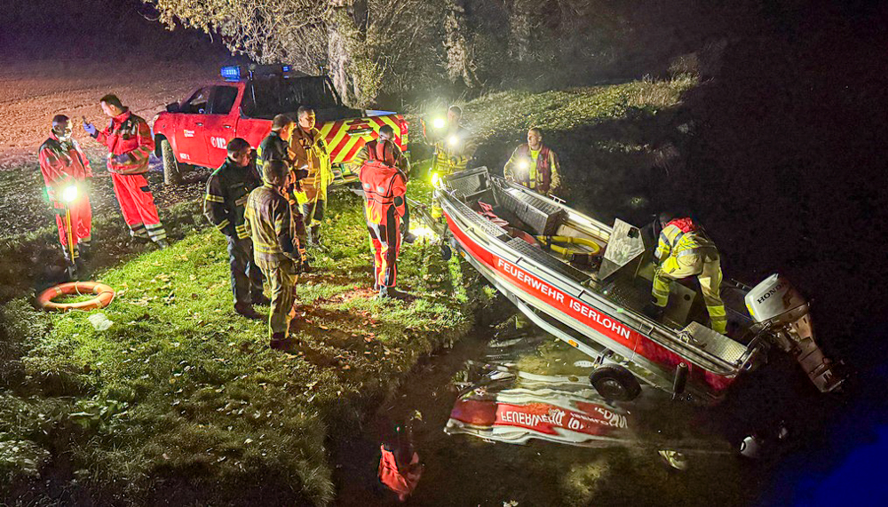 (ots). In der Nacht von Samstag auf Sonntag wurde über den Notruf 112 eine Person in der Ruhr gemeldet. Umgehend rückten der Rüstzug sowie das Mehrzweckfahrzeug mit dem Rettungsboot der Berufsfeuerwehr Iserlohn sowie die Löschgruppe Drüpplingsen der Freiwilligen Feuerwehr zur „Schoofs Brücke“ aus. Nach bisherigen Erkenntnissen war dort eine Gruppe Männer beim Angeln, als einer der Angler aus bislang ungeklärter Ursache in die Ruhr fiel und für die Anwesenden sofort nicht mehr zu sehen war.