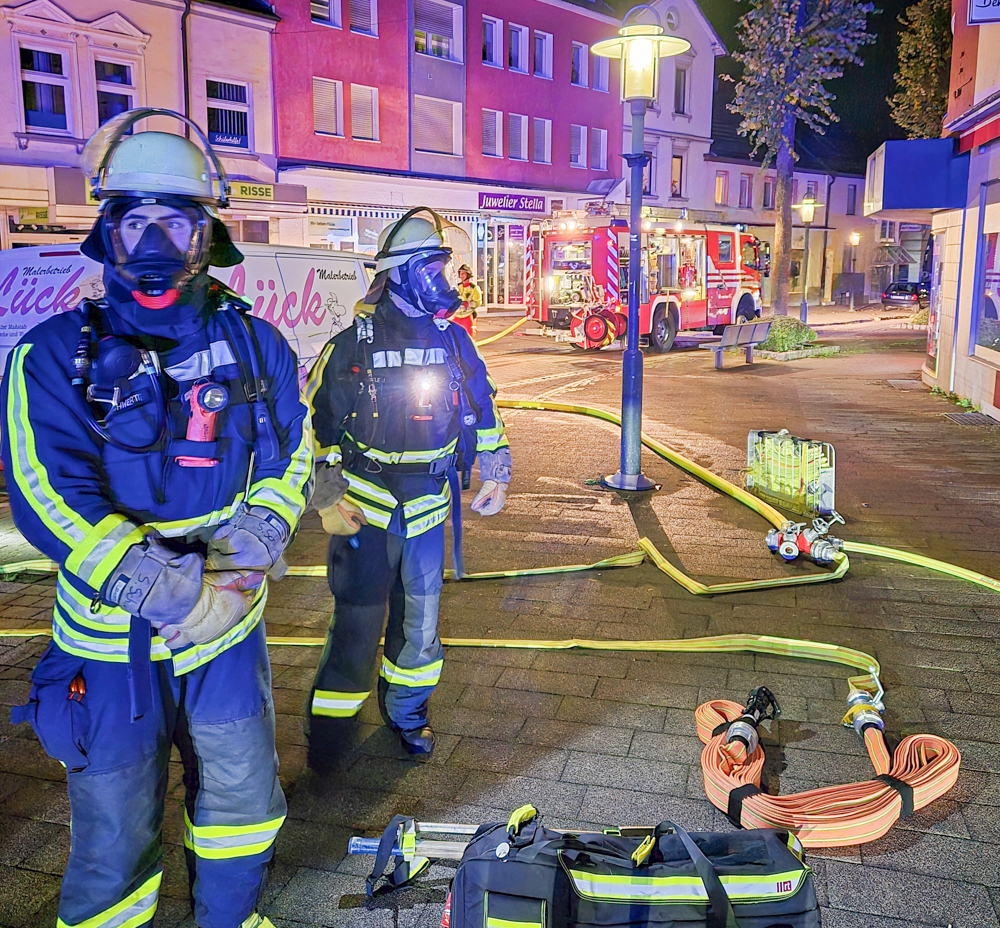 Nur wenige Stunden später, am Samstagmorgen um 05:40 Uhr, erfolgte der nächste Einsatz. Der Löschzug Wache sowie der Löschzug Mitte wurden zu einem Brand in einem Wohn- und Geschäftshaus in der Hemeraner Innenstadt alarmiert.