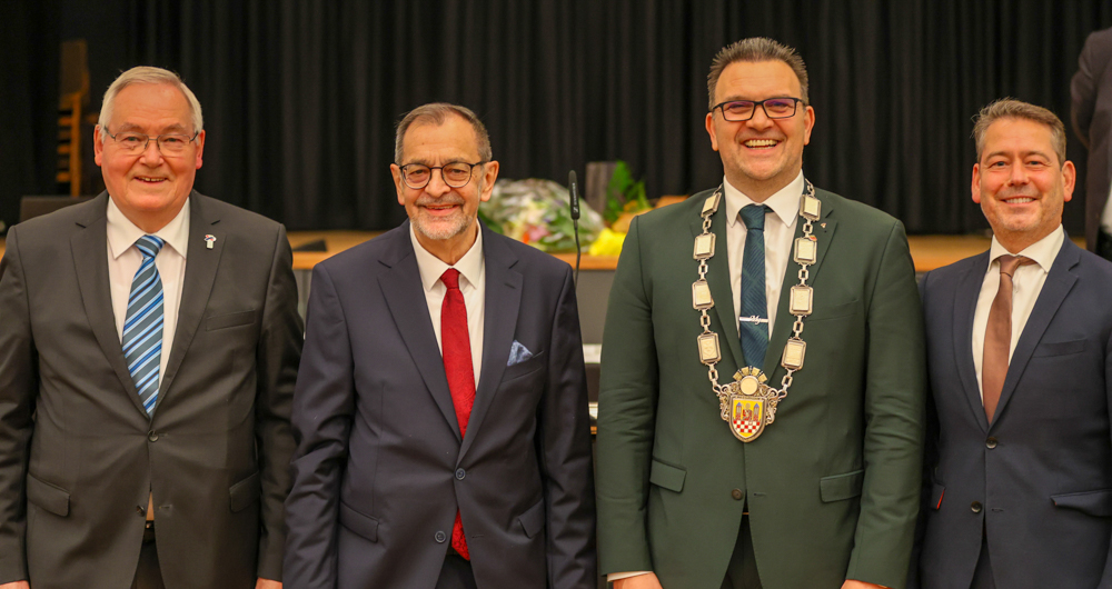 Die Bürgermeister der Stadt Iserlohn (von links) Heinz Balkenhoff (Die Iserlohner, 3. Stellvertreter), Michael Scheffler (SPD, 2. Stellvertreter), Bürgermeister Michael Joithe (Die Iserlohner) und Karsten Meininghaus (CDU, 1. Stellvertreter). Foto: Hendrik Klein