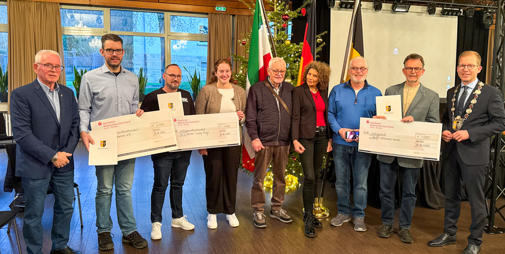 (PSH). Im Alten Casino am Sauerlandpark wurden jetzt die Heimatpreise des Landes Nordrhein-Westfalen verliehen. Hemers Bürgermeister Christian Schweitzer überreichte dabei –im Namen des Rates der Stadt Hemer – die symbolischen Schecks an drei engagierte Hemeraner Initiativen. Über Fördergelder freuen sich der Verein „Wir in Ihmert e. V.“ (2.500 Euro), der HTV Hemer (1.500 Euro) sowie ZWAR Hemer (1.000 Euro). Der Heimatpreis würdigt besonderes Engagement für Heimatpflege, den Erhalt von Kultur und Tradition sowie für den gesellschaftlichen Zusammenhalt in Hemer. Über die Preisträger entschied im November der Kulturausschuss als neutrale und unabhängige Jury.