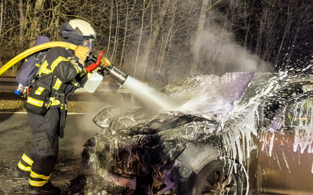 An Heiligabend musste die Feuerwehr einen brennenden PKW auf der Schwerter Straße in Letmathe in Höhe der Autobahnbrücke löschen. Foto: Marvin Asbeck/Feuerwehr Iserlohn