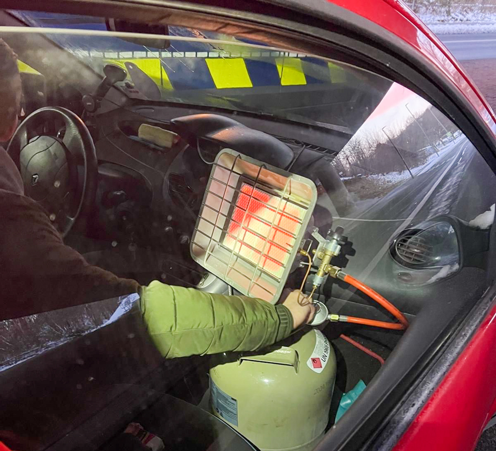 Da staunten die Gesetzeshüter nicht schlecht, in Iserlohn beheizte ein Autofahrer den Innenraum seines PKW mit einem gasbetriebenen Heizstrahler. Foto: Polizei