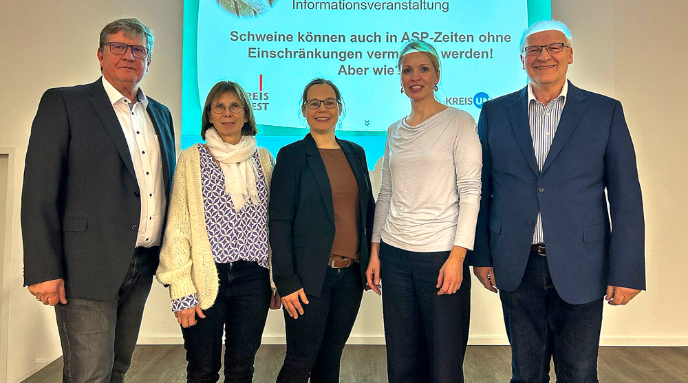 Der ernste Hintergrund liegt bereits greifbar nah: Die ASP ist nur noch knapp 60 Kilometer Luftlinie vom Kreis Soest entfernt. Das Auftreten der Tierseuche im Sommer 2025 in Kirchhundem im Kreis Olpe war für die Organisatoren Anlass, an die bekannten Vorsorgemaßnahmen zu erinnern. Außerdem ging es schwerpunktmäßig um die Vorbereitung der Landwirtschaft mit Schweinehaltung für den Ernstfall. Die gesamte Wertschöpfungskette von der Ferkelzucht über die Mast bis hin zum Schlachthof und die Weitervermarktung im Handel wurden bei der Informationsveranstaltung unter dem Aspekt eines ASP-Seuchenausbruchs beleuchtet. Maßnahmen, die die Landwirtschaft bereits jetzt ergreifen kann, um einen erfolgreichen Absatz von Schweinen – auch im ASP-Seuchenfall – sicherzustellen, wurden aufgezeigt: „Um dann nicht vor massiven wirtschaftlichen Problemen zu stehen, können Betriebe schon jetzt eine Menge tun“, erklärt Dr. Martina Poppe, Leiterin des Kreisveterinärdienstes Soest.