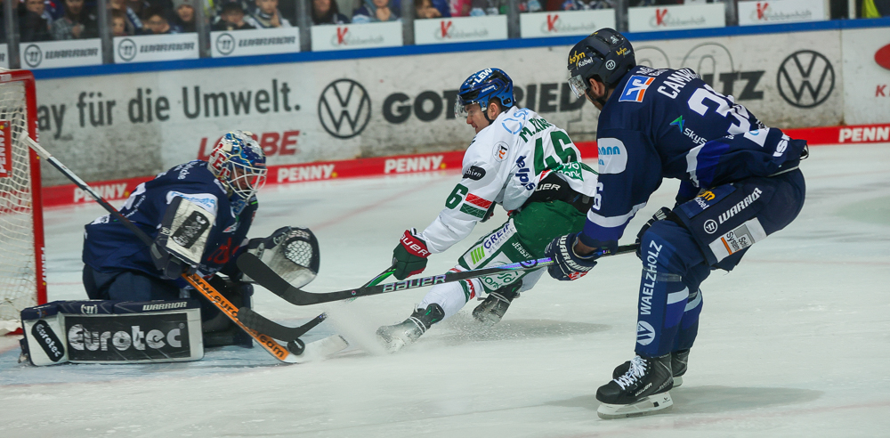 Dann musste er doch hinter sich greifen. Enrico Morales Henriques traf aus spitzem Winkel in der 53. Minute zum 2:2-Ausgleich für die Panther. Die Antwort der Hausherren ließ nicht lange auf sich warten: Colin Ugbekile stellte nur knapp 90 Sekunden später mit seinem achten Saisontreffer den alten Ein-Tore-Abstand wieder her. Knapp zwei Minuten vor dem Ende ging Augsburg-Keeper Garteig zugunsten eines sechsten Feldspielers vom Eis. Christian Thomas machte mit seinem Schuss ins Leere Panther-Tor neun Sekunden vor der Schlusssirene den Deckel drauf auf die Partie. Die Punkte blieben am Seilersee.