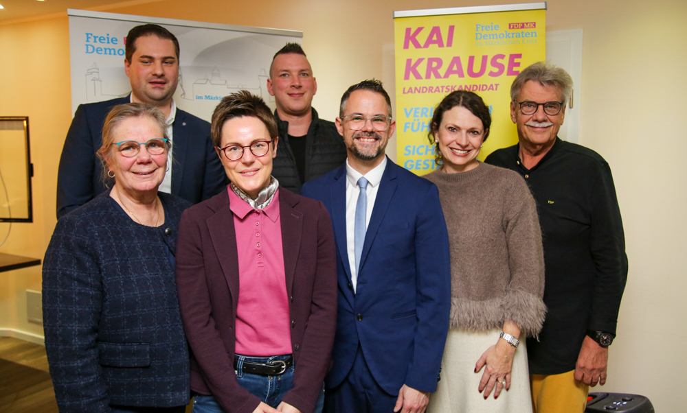 Kai Krause aus Meinerzhagen ist neuer FDP-Kreisvorsitzender im Märkischen Kreis. Der verheiratete Vater von vier Kindern und Dienstgruppenleiter bei der Polizei wurde beim Kreisparteitag der Liberalen in Kierspe von allen 45 anwesenden Stimmberechtigten gewählt. Krause, der im September vergangenen Jahres Landratskandidat der FDP war, wird damit Nachfolger der Eva Thielen. Die Hemeranerin hatte nicht wieder für den FDP-Kreisvorsitz kandidiert, sich aber auf Bitten von Kai Krause für das Amt der stellvertretenden Kreisvorsitzenden zur Verfügung gestellt. Eva Thielen erhielt 43 Stimmen. „Der Kreisvorstand schlägt jemanden vor, der es besser kann“, so die Hemeranerin.
