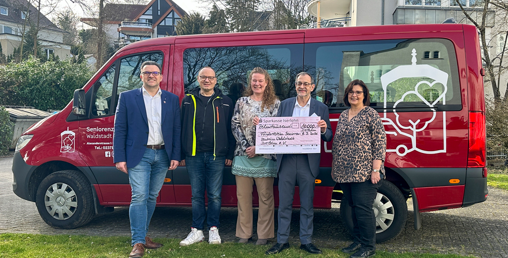 (PSI). Mehr Mobilität, mehr Teilhabe und mehr Möglichkeiten für gemeinsame Aktivitäten: Das Seniorenzentrum Waldstadt Iserlohn (SWI) freut sich über einen neuen Kleinbus für seine Tagespflege. Möglich wurde die Anschaffung durch eine Spende der Bürgerstiftung der Sparkasse Iserlohn in Höhe von 10.000 Euro, die im Rahmen einer symbolischen Scheckübergabe am Freitag, 6. März, im Garten der Einrichtung überreicht wurde.