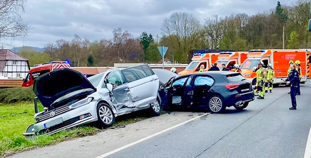 Auf der Barendorfer Straße in Iserlohn krachten zwei Fahrzeuge frontal gegeneinander. Dabei wurden mehrere Personen leicht verletzt. Foto: Polizei
