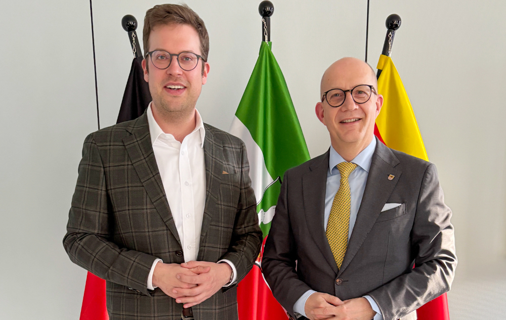 (pmk). Antrittsbesuch im Kreishaus Lüdenscheid: Landrat Ralf Schwarzkopf hat den Bundestagsabgeordneten Florian Müller (CDU) zu einem Austausch über wichtige finanz- und kommunalpolitische Themen getroffen. Im Fokus des Dialogs standen allen voran die Haushaltslagen der Kommunen und Kreise in Nordrhein-Westfalen und die Bedeutung des Konnexitätsprinzips.
